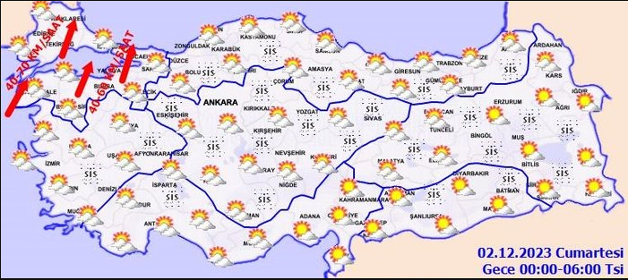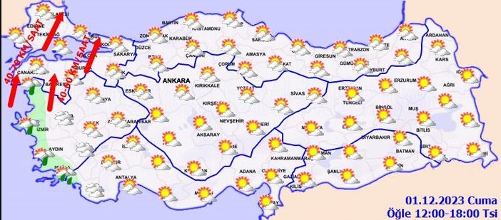 Rüzgârın Marmara ve Kuzey Ege'de güneyli yönlerden kuvvetli, zaman zaman kısa süreli fırtına şeklinde (40-60 km/saat) esmesi beklendiğinden yaşanabilecek olumsuzluklara karşı dikkatli ve tedbirli olunması gerekmektedir.