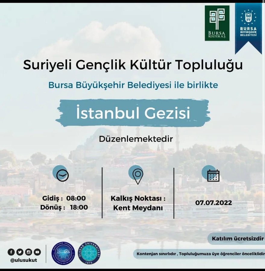 24 Bursa internet sitesinde yer alan habere göre Büyükşehir Belediyesi ile Kültür AŞ’nin iştirakinde Uludağ Üniversitesi Suriyeli Gençlik Kültür Topluluğu adına 7 Temmuz 2022 Perşembe günü İstanbul gezisi düzenleneceği açıklandı. Bursa Kültür AŞ'nin ilanına göre gezi 7 Temmuz günü gerçekleştirilecek ve de ücretsiz. Gezinin sosyal medyadan yapılan duyurusu üzerine Zafer Partisi Bursa İl Başkanlığı geziye tepki gösterdi.