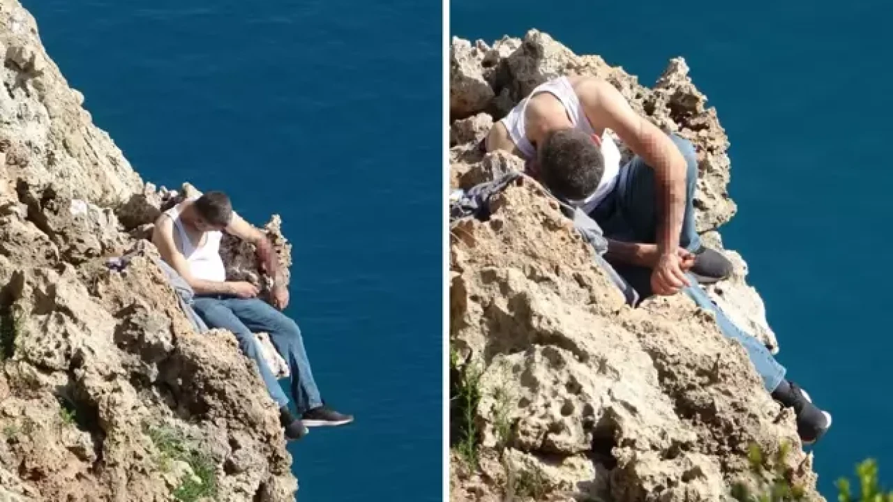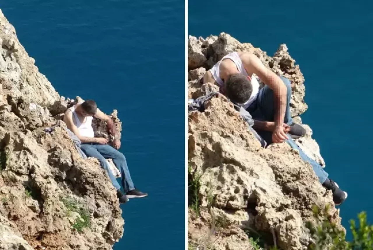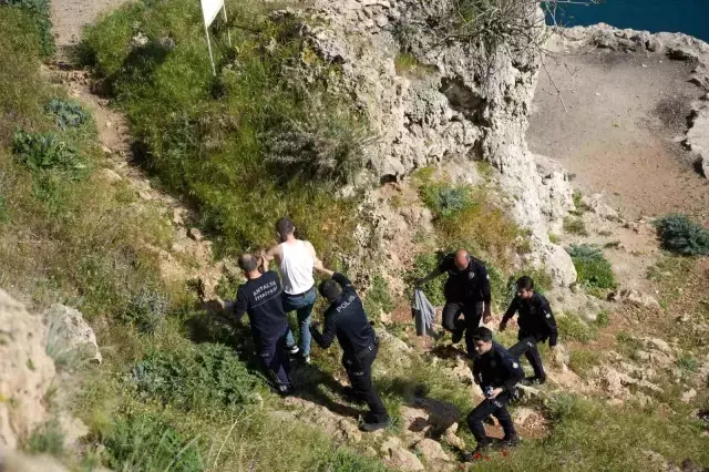 Antalya'da 42 yaşındaki U.K., falezlerin en uç noktasına oturarak intihar girişiminde bulundu. Kesici aletlerle kendine zarar veren adam, polisin 45 dakikalık ikna çabası sonucu kurtarıldı.