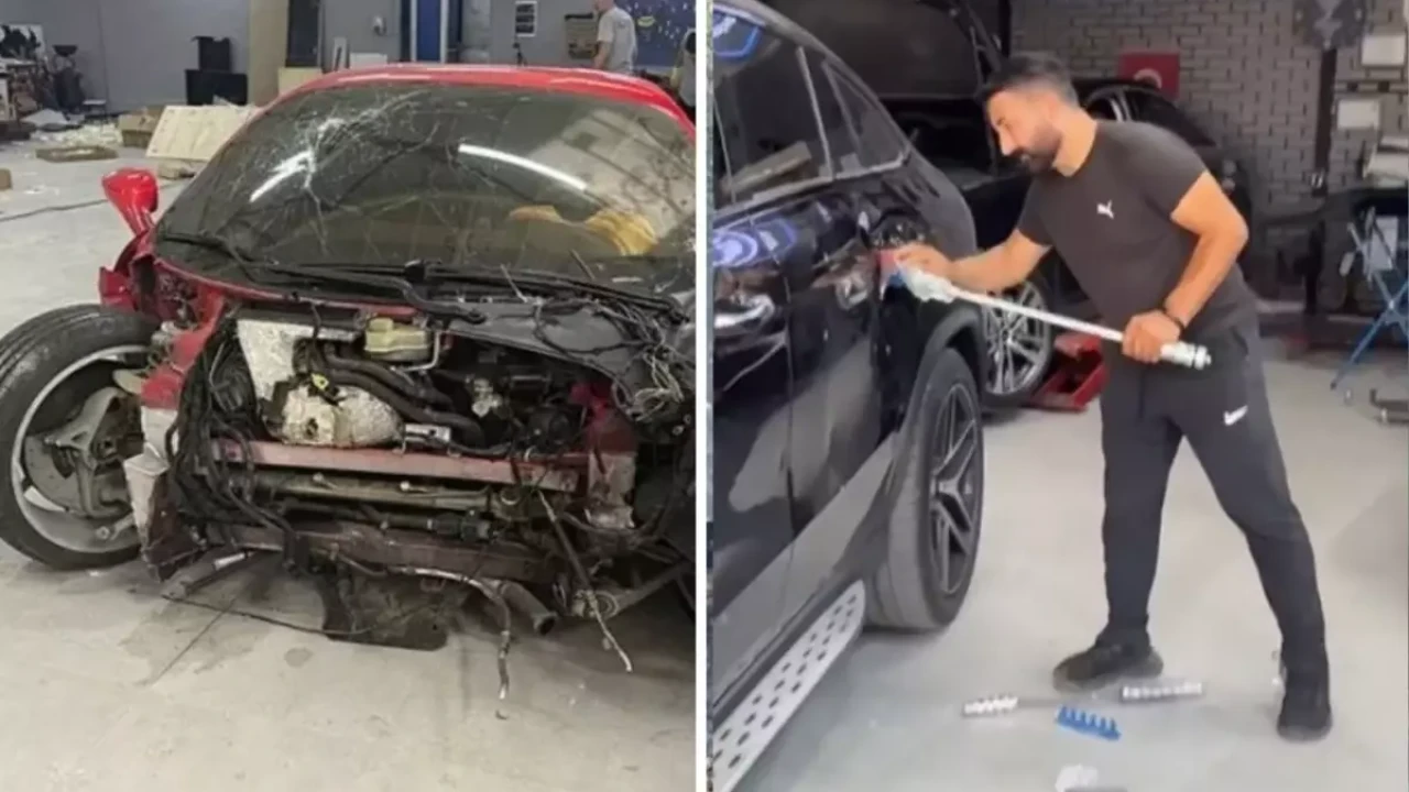 Geçtiğimiz günlerde test sürüşüne çıkardığı Ferrari’yi perte çıkarmasıyla gündeme gelen usta, bu kez de boyasız göçük tamiri yapmak isterken araca zarar verdi. İşlem sırasında aracın boyası kalktı ve o anlar kameraya yansıdı.