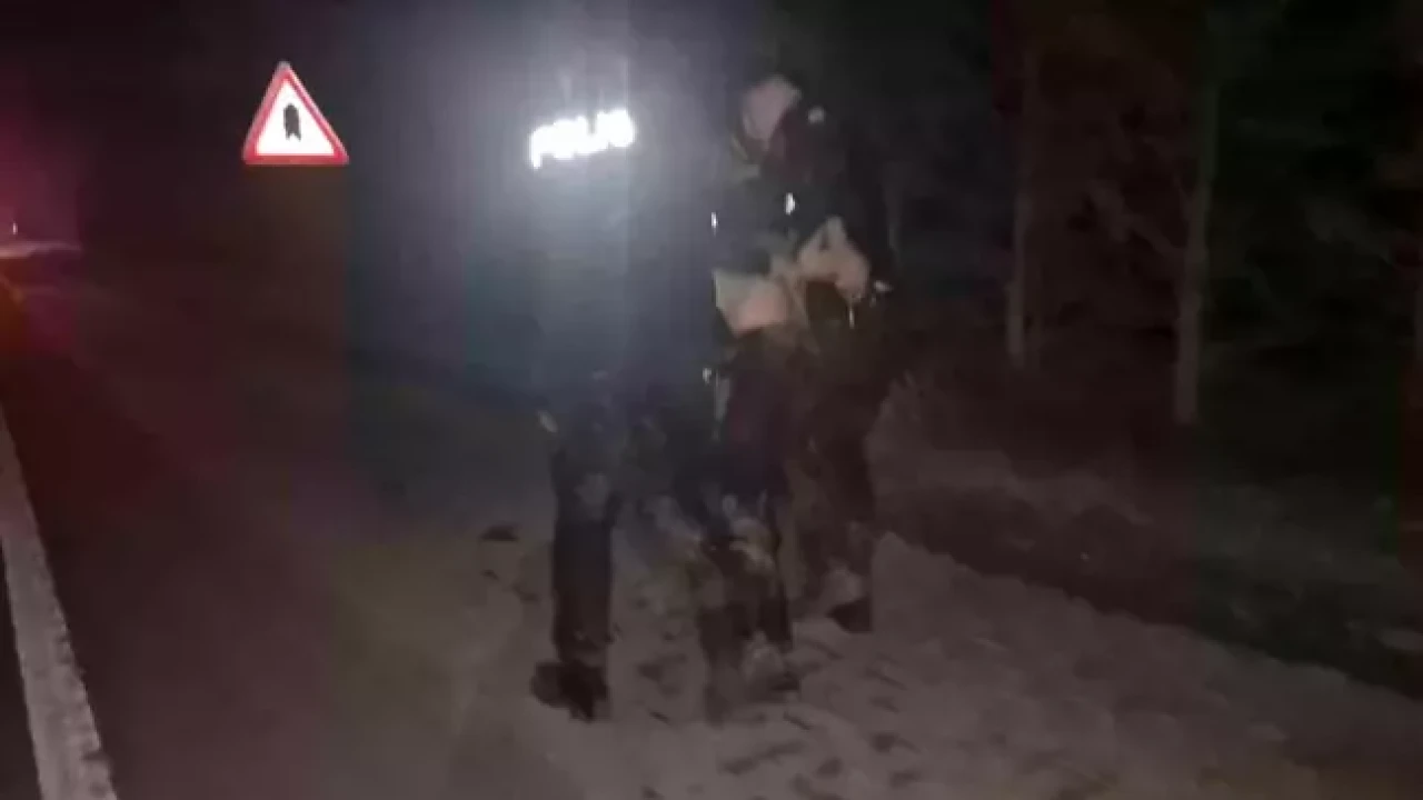 Şahsın kaçmasıyla birlikte olay bir anda kovalamacaya dönüştü. Polis memurları A.T.'yi durdurmak için peşinden koştu. Kısa sürede kaldırım boyunca ilerleyen A.T., ardından yol kenarındaki karanlık araziye yöneldi. Ne yazık ki, karanlığın içinde bulunan bir kanalı fark edemeyen iki polis memuru da şahsın ardından bu bataklık alana girerek çamura saplandı. Şahsın yanı sıra bataklığa düşen polislerin de yardıma ihtiyacı vardı.