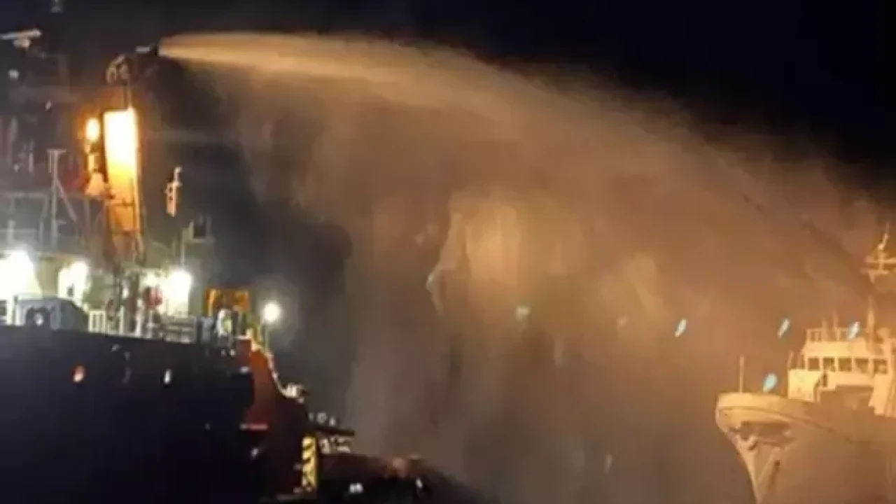 Gemi gövdesinde gedik açıldı, pruvası alev aldı