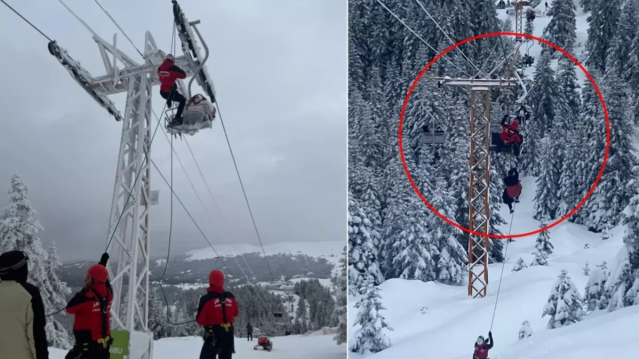 Bölgeye ulaşan JAK ekipleri, telesiyej hattında havada kalan tatilcilerin güvenli şekilde indirilmesi için çalışma yürüttü. Kurtarma planı doğrultusunda tahliye işlemleri kısa sürede organize edildi.