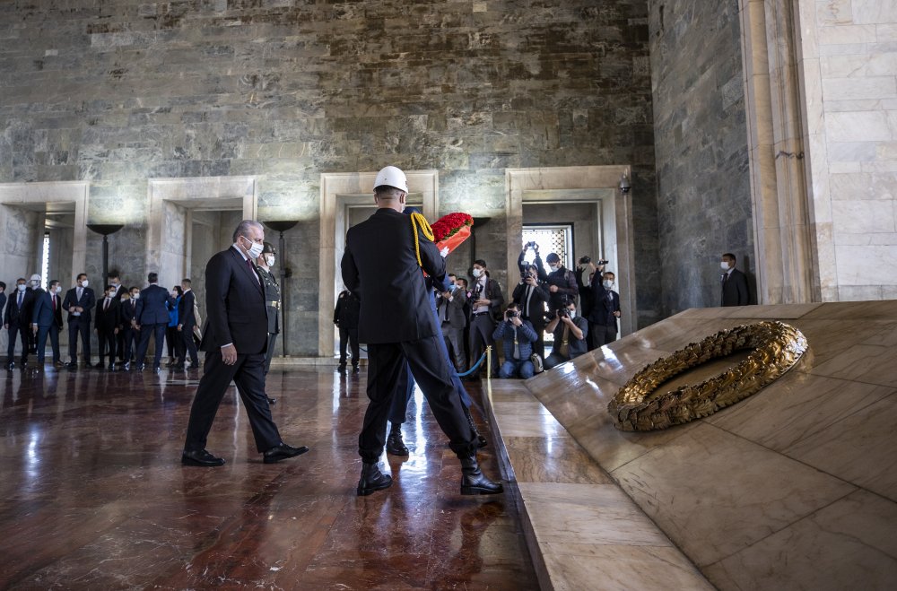 Aslanlı Yol'dan yürüyerek Atatürk'ün mozolesine gelen heyet, TBMM Başkanı Şentop'un mozoleye çelenk bırakmasının ardından saygı duruşunda bulundu ve İstiklal Marşı'nı okudu.
