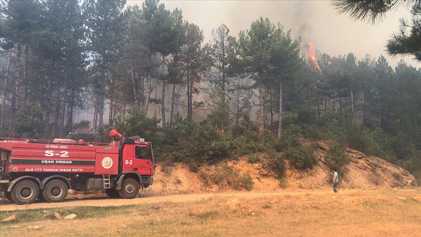 Uşak'ın Banaz ilçesinde Hasanköy sınırları içindeki Gebelidere mevkisindeki ormanlık alanda yangın çıktı. Rüzgarın etkisiyle yayılan alevlere 5 helikopter, Uşak Orman İşletme Şefliğine bağlı 20 arazöz, 3 dozer ve çevre ilçelerdeki belediyelerden itfaiye ekipleri müdahale etti. Yangın kontrol altına alındı.