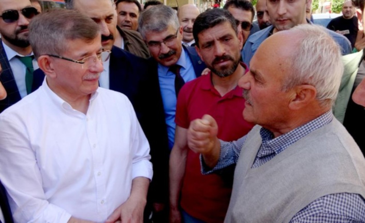 İki şehit yakını ise Davutoğlu'na, "Sizi tebrik ederim. Niçin tebrik ederim? PKK ile yuvarlak masada oturduğunuz için. Bu benim hoşuma gitmiyor. O kadar şehit var, polis öldürüyorlar, asker öldürüyorlar. Bunu yapmayın. Ben şehit babasıyım bunu bana yapma, beni yakma. CHP'den uzak dur" dedi.