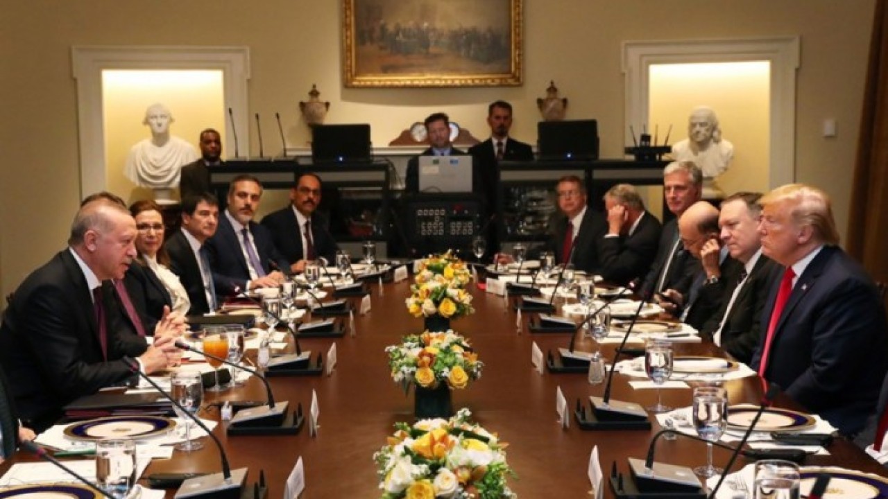 ABD ile Türkiye arasında gerçekleşen kritik görüşme sona erdi. Cuhmurbaşkanı Recep Tayyip Erdoğan ve ABD Başkanı Trump'ın oval ofiste yaptıkları önemli görüşme 1 saat 15 dakika sürdü. Her iki ülke için de ciddi meselelerin tartışıldığı görüşme dikkat çekici ayrıntılara da ev sahipliği yaptı. Görüşmede Dışişleri Bakanı Mevlüt Çavuşoğlu ile Cumhurbaşkanlığı Sözcüsü İbrahim Kalın, ABD Dışişleri Bakanı Mike Pompeo ve ABD Ulusal Güvenlik Danışmanı Robert O'Brien da hazır bulundu.