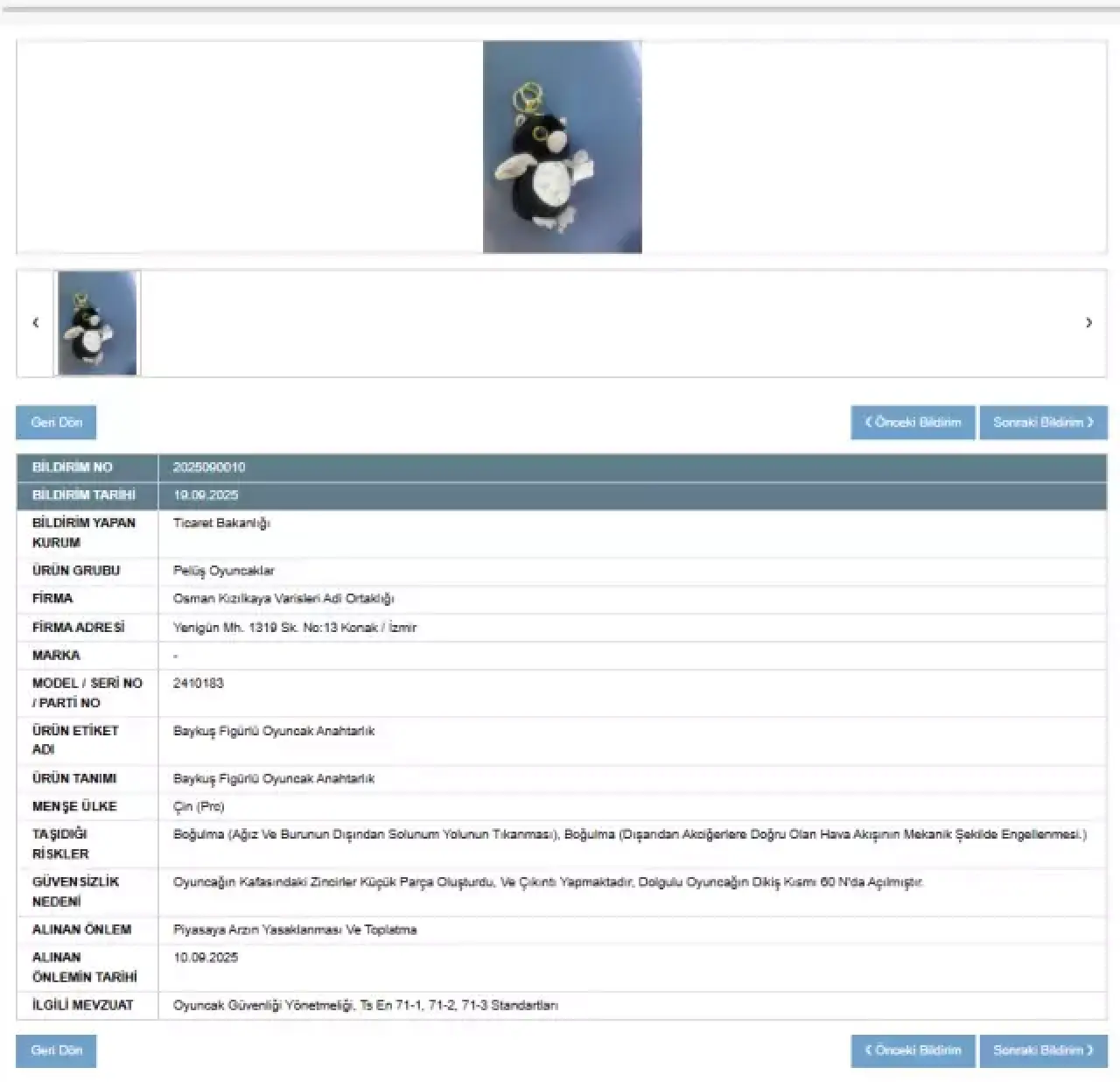 Çocukların sağlığını yakından ilgilendiren önemli bir karar alındı. Ticaret Bakanlığı, piyasa gözetim ve denetim çalışmaları sonucunda riskli bulunan ürünleri kamuoyuyla paylaşmaya devam ediyor. Bakanlık, “Güvensiz Ürün Bilgi Sistemi” üzerinden yaptığı son duyuruda, iki oyuncağın daha listeye eklendiğini açıkladı.
