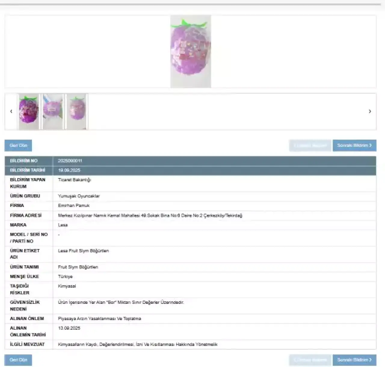 Denetimlerde söz konusu oyuncakların kullanımının çocuk sağlığı için ciddi tehlikeler oluşturduğu tespit edildi. Güvensiz olduğu belirlenen bu ürünlerin satışına yasak getirilirken, piyasada bulunanların da toplatılması yönünde karar alındı.