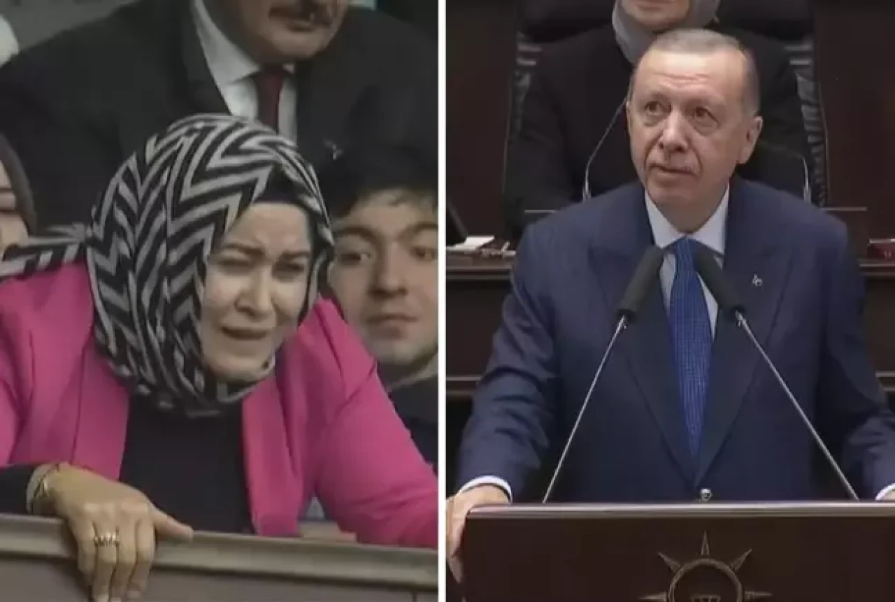 Partisinin TBMM Grup Toplantısı'nda açıklamalarda bulunan Cumhurbaşkanı Erdoğan, gündemdeki konulara değindiği esnada ilginç bir gelişme yaşandı. Sözü sesli bir şekilde şarkı söyleyen kadın partili tarafından kesilen Erdoğan, olay karşısında önce şaşırsa da sonra tebessüm etti.