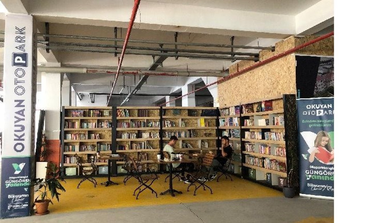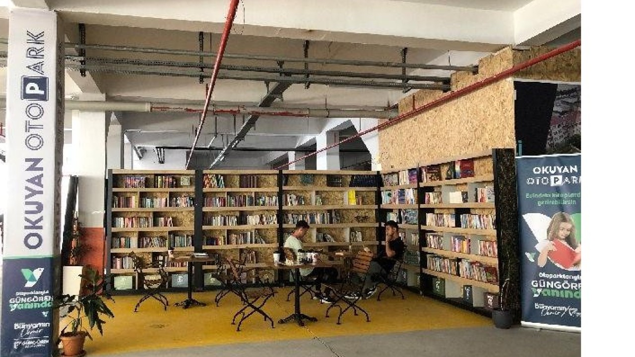 285 araçlık otoparkın bir kısmında bulunan kütüphanede, vatandaşlar istediği kitabı okuyabiliyor, dilerlerse satranç oynayıp boş zamanlarını değerlendirebiliyor.