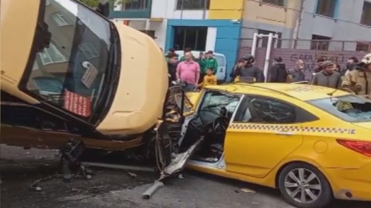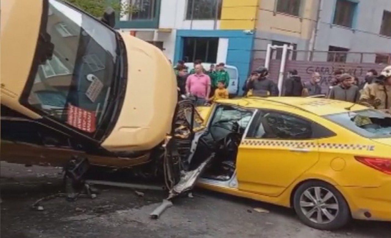 İstanbul'un Eyüpsultan ilçesinde bu sabah akıl almaz bir kaza meydana geldi. İçinde 6 yolcu bulunan minibüs, refüjdeki demir bariyerleri parçalayıp karşı şeride geçerek taksiye çarptı.