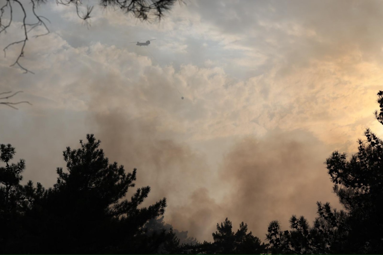 Kısa sürede yayılan alevlere 6 helikopter, 5 uçak, 25 arazöz ve 8 su tankeriyle müdahale ediliyor.