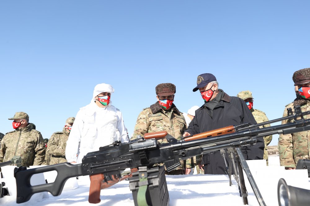 Öte yandan Akar ve Hasanov başta olmak üzere tatbikata katılan personelin taktığı Türkiye ve Azerbaycan bayraklarının motiflerini taşıyan maskeler dikkati çekti.