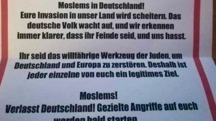 Türklerin yoğun olarak yaşadığı ve 15 yıl önce çivili bombalı saldırıya maruz kalan Keup Caddesi çevresindeki sokaklarda oturan yabancı kökenli kişilerin posta kurularına bırakılan mektuplarda, "Sizler de Yahudiler gibisiniz. Müslümanlar Almanya'yı terk edin. Yakında size yönelik saldırılar başlayacak." şeklinde ifadeler yer alıyor.