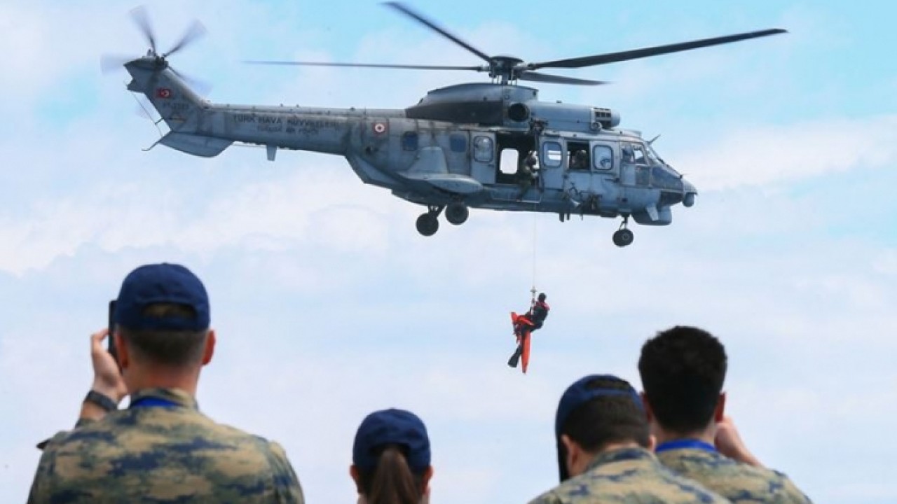 Kara Kuvvetlerine bağlı helikopterden denize indirilen personel de bir başka kazazedeyi helikoptere çekti.