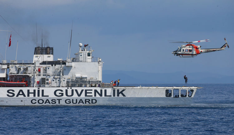 TSCG Umut Gemisi'nden arama kurtarma tatbikatı izlendi.