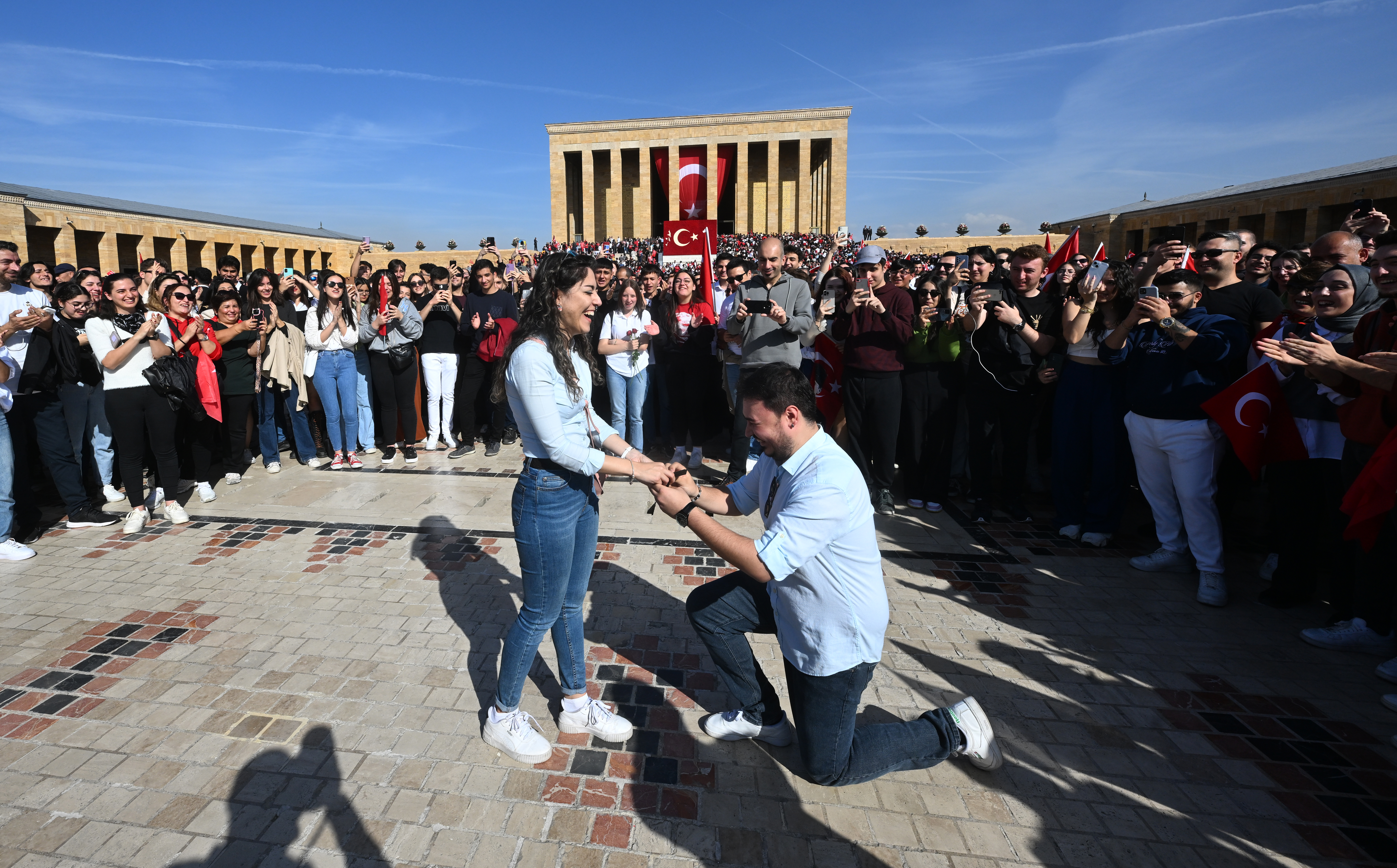 Anıtkabir'de bir genç kız arkadaşına evlilik teklifi yaptı.