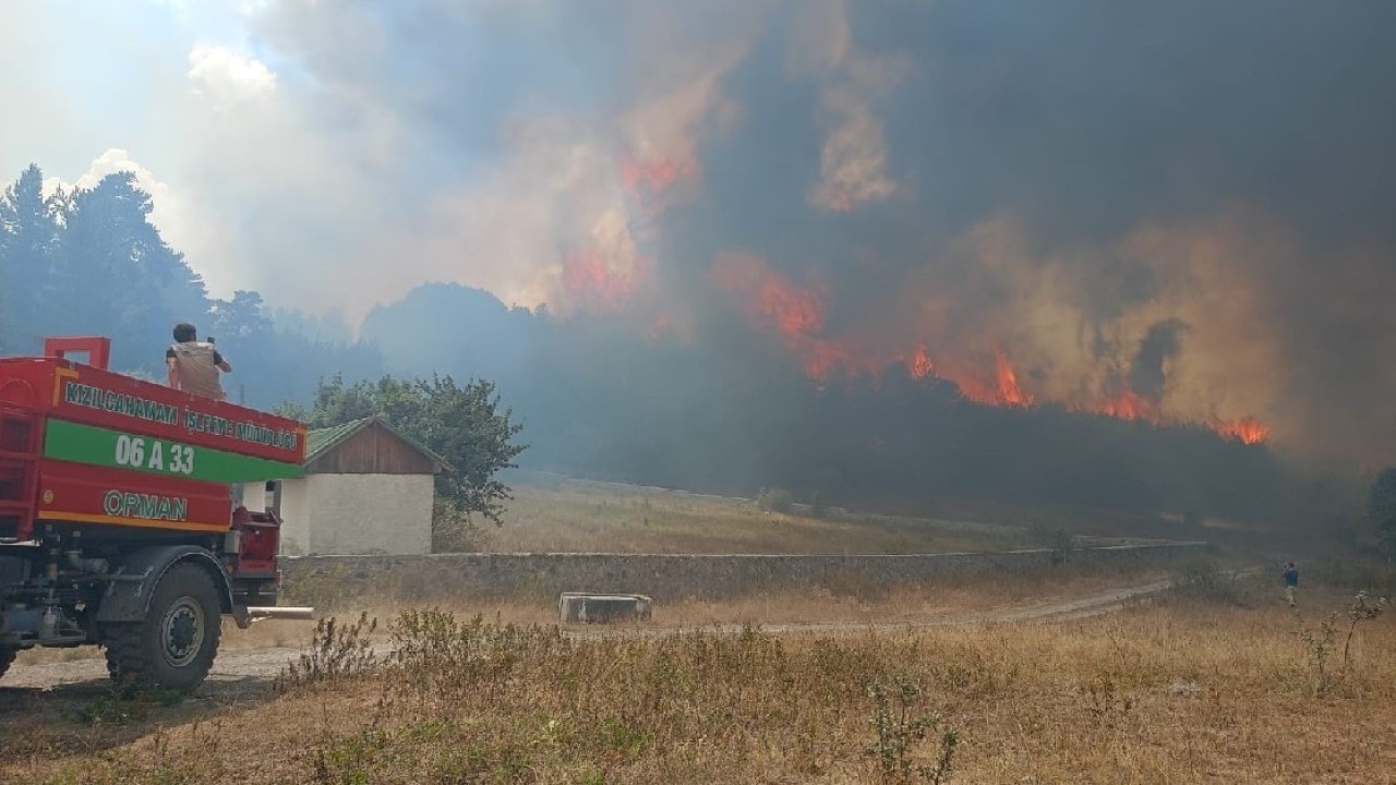 "Ankara ili Kızılcahamam ilçesinde bugün saat 12.28 sıralarında başlayan ve ilimiz Gerede ilçesi Demirler köyü mevkisine sirayet eden orman yangınına Valiliğimizin koordinesinde müdahale edilmekte olup söndürme çalışmaları devam etmektedir."