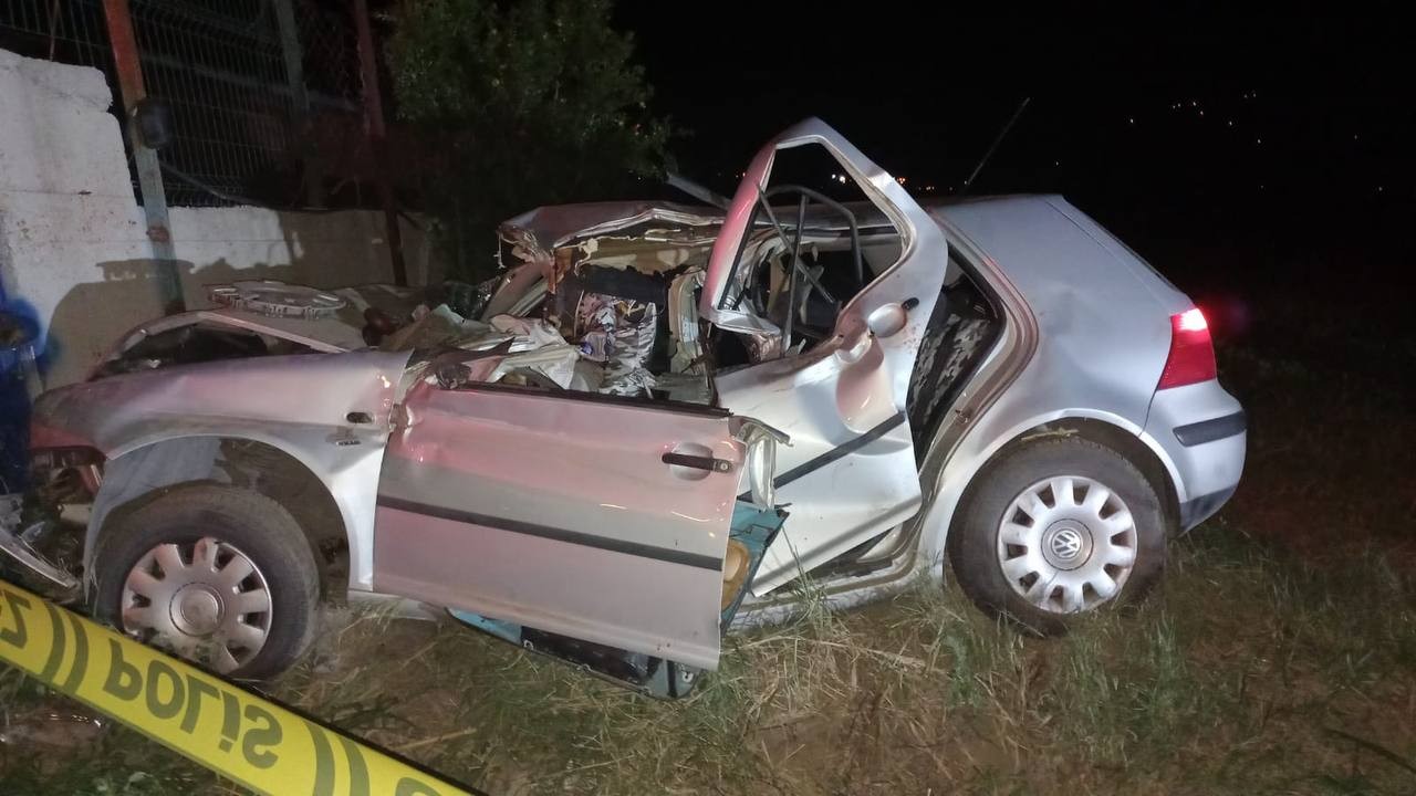 Çarpışmanın etkisiyle sürüklenen otomobil duvara çarptı.