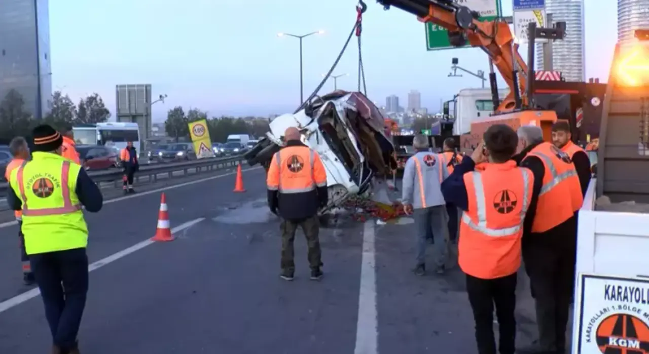 Kaza nedeniyle TEM Otoyolu'nda 2 şerit trafiğe kapatıldı. Trafik akışı tek şeritten kontrollü olarak sağlandı.