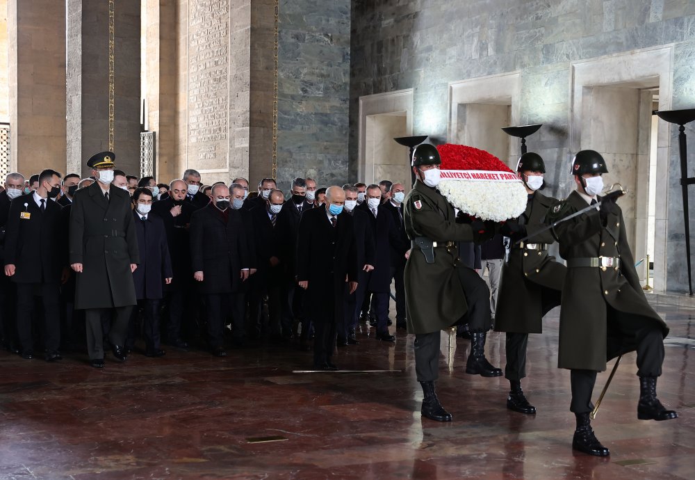 Bahçeli ve beraberindekiler, parti genel merkezindeki MYK ve MDK toplantısı öncesi yaptıkları Anıtkabir ziyaretinde Aslanlı Yol'dan yürüyerek Atatürk'ün mozolesine geldi. Bahçeli'nin mozoleye çelenk bırakmasının ardından saygı duruşunda bulunuldu. Daha sonra Misakımilli Kulesi'ne geçen Bahçeli, Anıtkabir Özel Defteri'ni imzaladı. Bahçeli, deftere şunları yazdı: