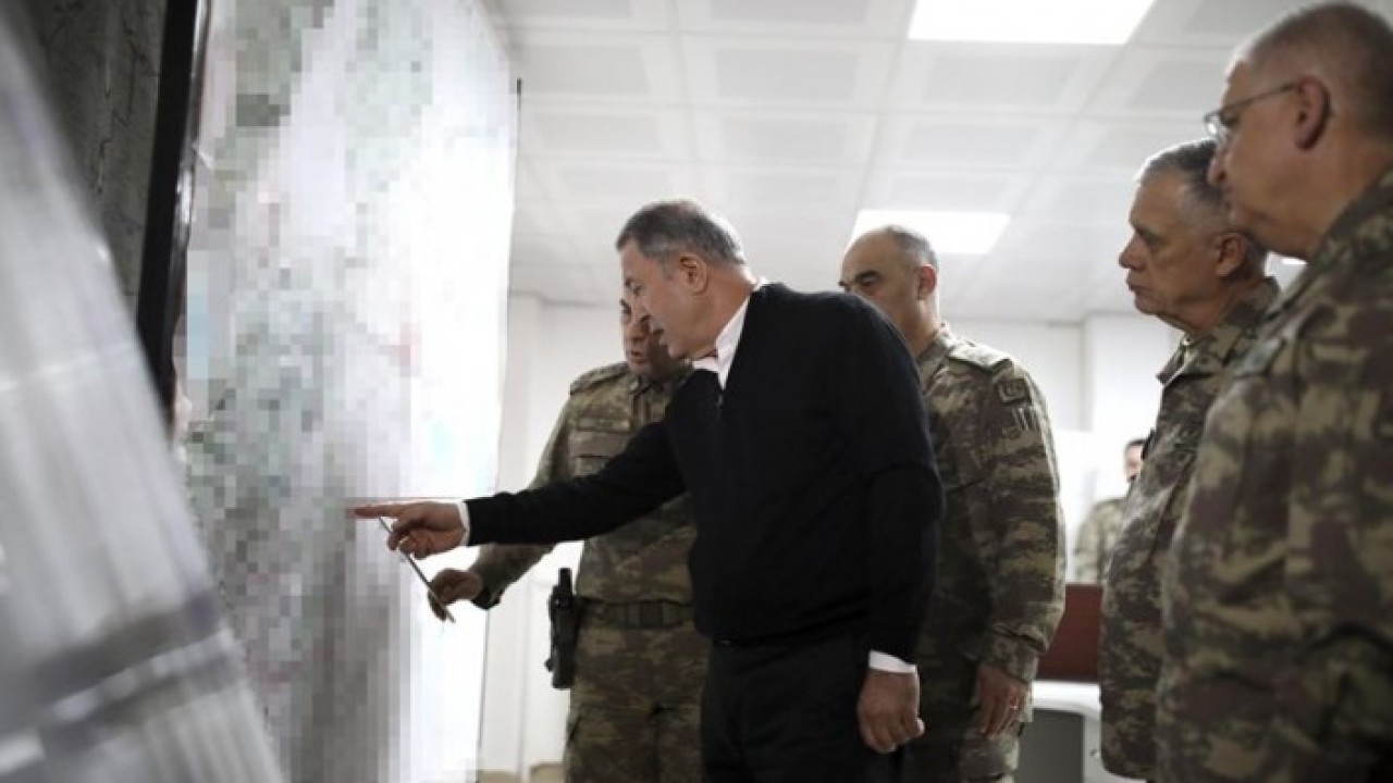 Akar, Orgeneral Güler, Kara Kuvvetleri Komutanı Orgeneral Ümit Dündar ve Hava Kuvvetleri Komutanı Orgeneral Hasan Küçükakyüz ile Suriye sınırının sıfır noktasındaki birlikleri ziyaret ederek, harekata ilişkin son bilgileri yerinde alıyor.