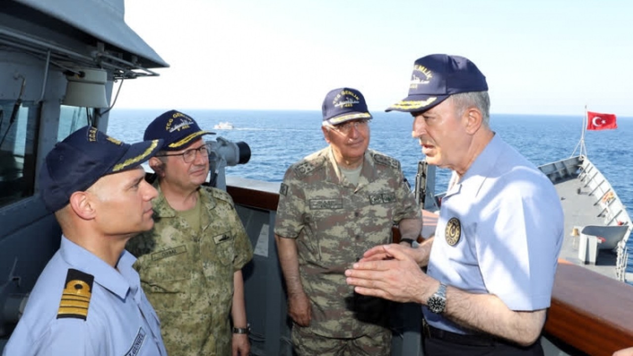 Helikopterle Yavuz sondaj gemisine refakat eden TCG Gemlik fırkateynine giden Akar ve TSK’nın komuta kademesi, faaliyetlere ilişkin deniz taktik resmi üzerinden brifing aldı, talimatlar verdi.