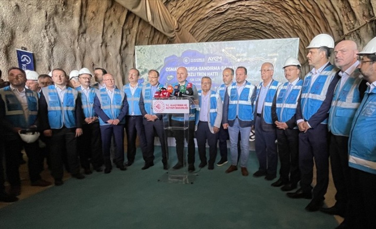 "12 Şubat'ta Mudanya Bulvarı'ndaki hızlı tren hattımızın viyadüğünde bir araya gelmiş, o zaman çalışmalarına yeni başlanan tünellerimizle canlı bağlantı kurmuştuk. Azimle, kararlılıkla hareket edince, çalışmalarımızın meyvelerini toplamak da nasip oluyor. O tünellerden biri olan yaklaşık 500 metre uzunluğundaki T04 tünelimizde bugün ışığı göreceğiz. Toplam uzunluğu 14 kilometre olan tünellerimizin, 5 aylık süre zarfında 3, 2 kilometresini tamamlamış olduk. T04 Tünelimizin kazı çalışmalarında 612 bin metreküplük toprak hareketi gerçekleştirdik, 140 bin metre zemin iyileştirmesini tamamladık. Diğer tünellerimizdeki çalışmalarımızı da kısa zaman içinde peş peşe tamamlayacağız. Altyapıya yönelik çalışmalarımız sürerken, üstyapıyla ilgili hazırlıklarımızı da sürdürüyoruz. Çalışmalarımızı hız kesmeden 7/24 sürdürerek, 2, 5 yıl içinde bitireceğiz. Yıllık 30 milyon yolcu ve 59 milyon ton yük taşıyabilecek olan hızlı tren projemiz, yapım sırasında ve işletmeye alındığında bölgemiz ve ülkemiz için