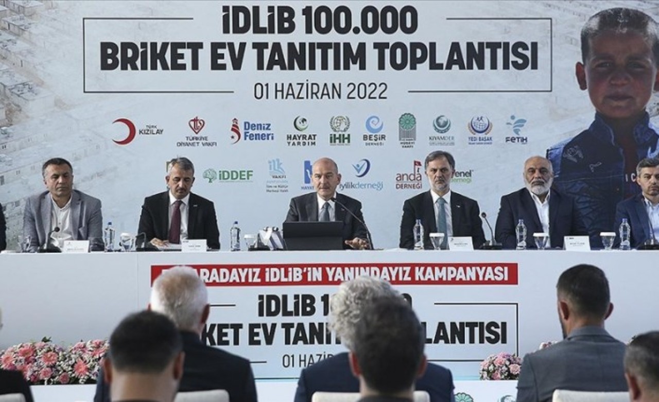 Cumhurbaşkanı Recep Tayyip Erdoğan'ın talimatıyla AFAD'ın koordinasyonunda STK'lerin desteğiyle Ocak 2020'de başlatılan "Bir Aradayız, İdlib'in Yanındayız" kampanyası kapsamında ilk etapta 20 bin briket ev yapımının planlandığını hatırlatan Soylu, gelinen noktada bu sayının 100 bine ulaştığını vurguladı. Bakan Soylu, Suriye'nin çeşitli bölgelerinde inşa edilen yapılara ilişkin şu bilgileri verdi: