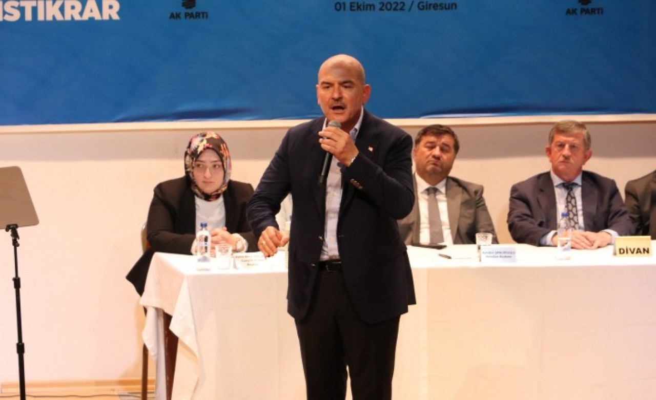 İçişleri Bakanı Süleyman Soylu, AK Parti Giresun İl Başkanlığınca Gümrük Müdürlüğü Toplantı Salonu'nda düzenlenen Genişletilmiş İl Danışma Toplantısı'na katıldı. Soylu, toplantıda yaptığı konuşmada, 26 Eylül'de Mersin'de polisevine gerçekleştirilen hain saldırıyla ilgili önemli açıklamalarda bulundu.