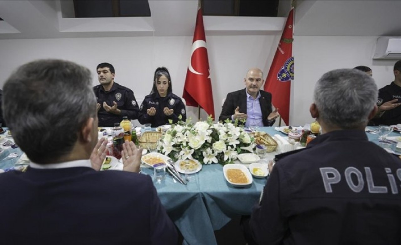 Bakan Soylu, ilk sahurunu Mamak Tuzluçayır Şehit Erkan Serdar Sallar Polis Merkezi Amirliğinde görevli polis ve bekçilerle yaptı.