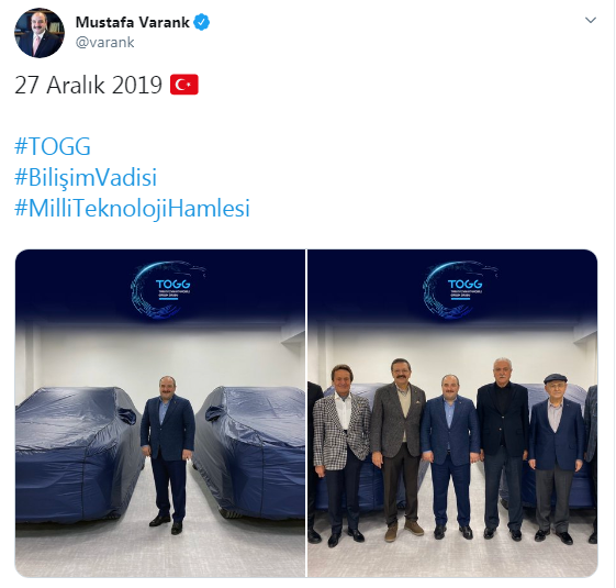 Sanayi ve Teknoloji Bakanı Mustafa Varank, sosyal medya hesaplarından yerli otomobilin fotoğrafını paylaştı.