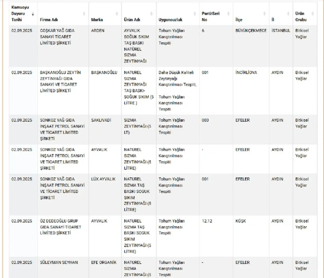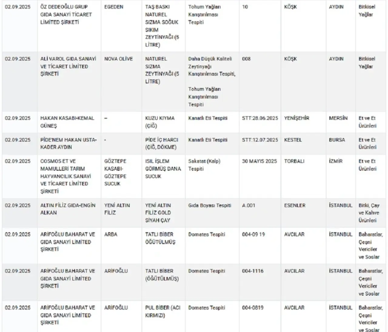 Tarım ve Orman Bakanlığı, taklit ve tağşiş yapılarak insan sağlığı tehlikeye düşüren gıdaların listesini yeniden düzenledi. Bakanlık, gıda ürünlerinde hile yapan markaları, 'guvenilirgida.tarimorman.gov.tr' internet adresi üzerinden kamuoyuna duyurmaya devam ediyor. Sitede yer alan 'Sağlığı Tehlikeye Düşürecek Gıdalar' ve 'Taklit ve Tağşiş Yapılan Gıdalar' başlıkları altında, söz konusu firmalar, markalar ve ürünler bulunuyor.