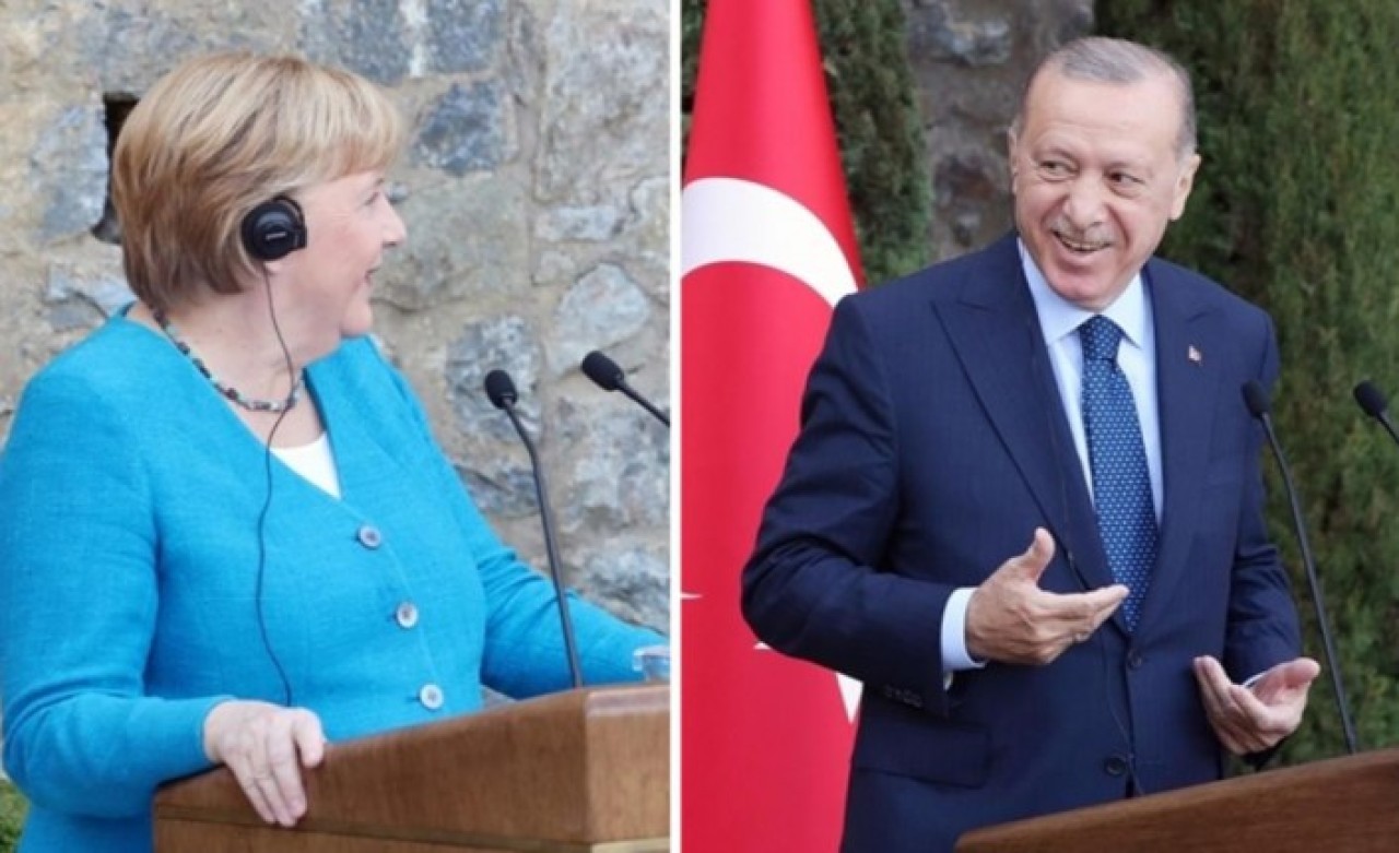 Erdoğan ve Merkel, Huber Köşkü'ndeki görüşmelerinin ardından köşkün bahçesinde kamera karşısına geçti. İkili önce sırayla konuşma yaptı. Açılış konuşmasını gerçekleştiren Cumhurbaşkanı, Merkel ile görev dönemi boyunca uyumlu çalıştıklarını belirterek, Almanya başbakanına bundan sonraki süreçte başarılar diledi.