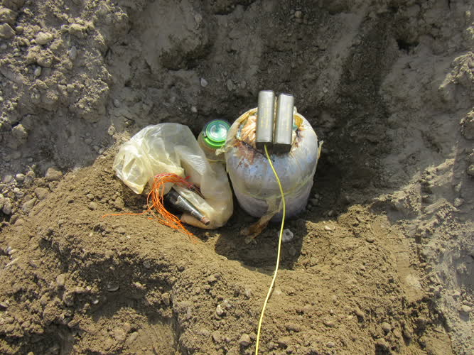 Çalışmalarda yola tuzaklanan 12 kilogramlık mutfak tüpü, 1 kilogram TNT, 20 kilogram amonyum nitrat ve 4 elektrikli fünye ile hazırlanan el yapımı patlayıcının yolun altına tuzaklandığı ve kablonun araziye çekildiği tespit edildi.