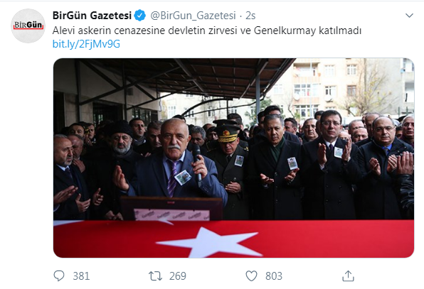 Muhalif kimliğinin ötesinde provokatif haberler yaparak halkın sinir uçlarına dokunan BirGün Gazetesi, şimdi de Kuzey Irak sınırında icra edilen görev sırasında şehit düşen asker üzerinden provokasyon yaptı. BirGün'ün internet sitesi üzerinden paylaşılan haberde şehit askerin Alevi olması nedeniyle Devlet büyüklerinden kimsenin katılmadığını savunuldu