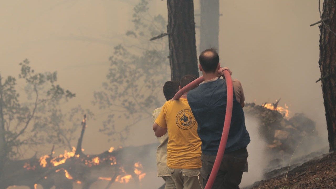 Yangının, havadan ve karadan süren çalışmalarla kontrol altına alınmasına çalışılıyor.