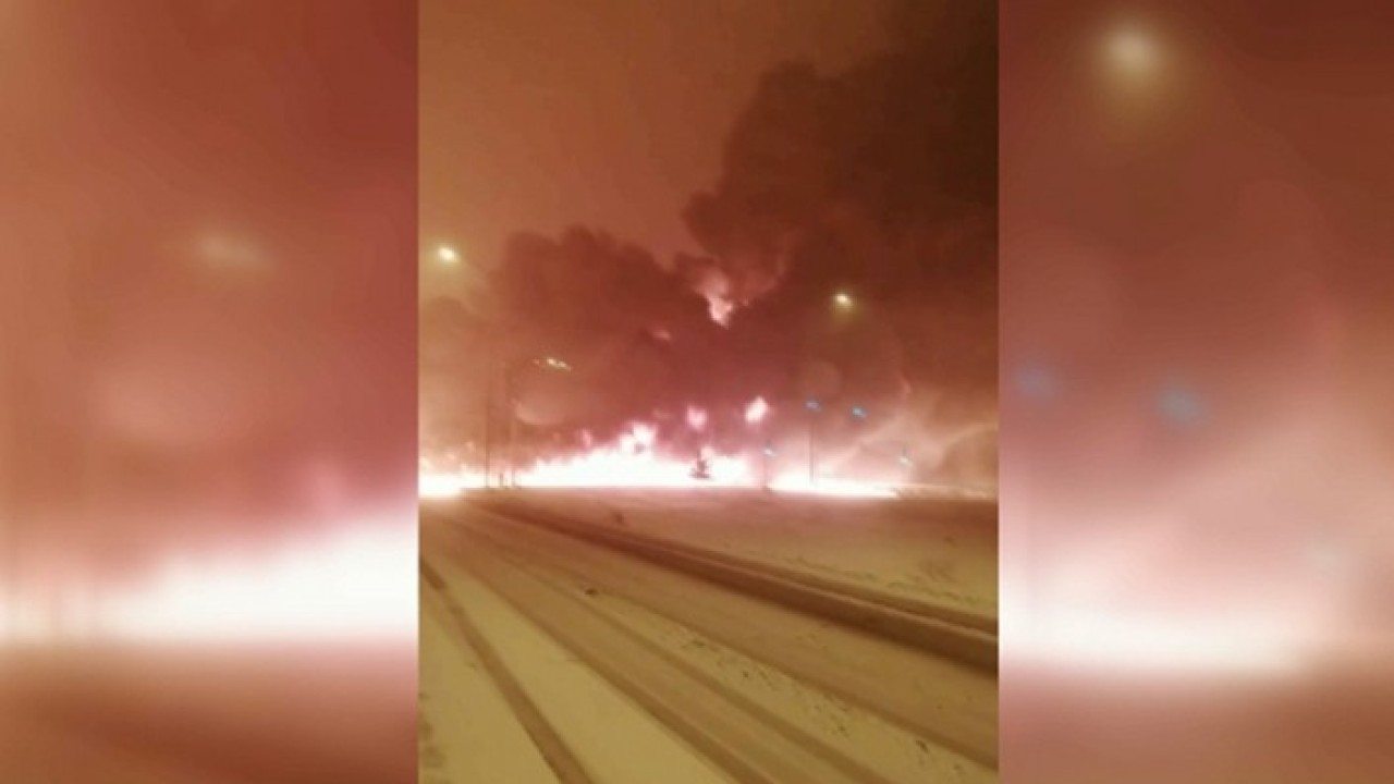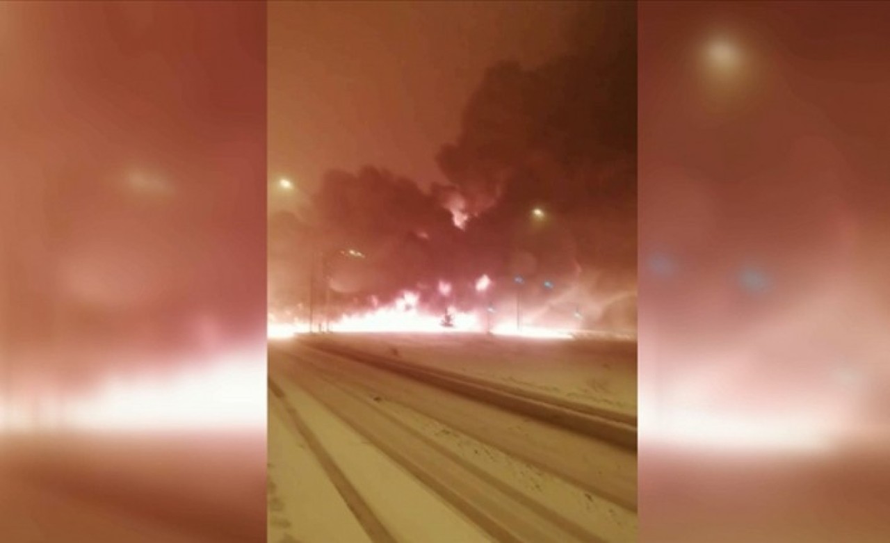 Yoğun kar yağışının etkili olduğu Pazarcık ilçesine bağlı Narlı Mahallesi'ndeki bir petrol boru hattında henüz bilinmeyen nedenle patlama meydana geldi.