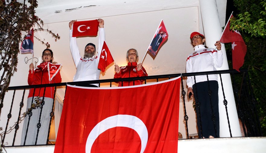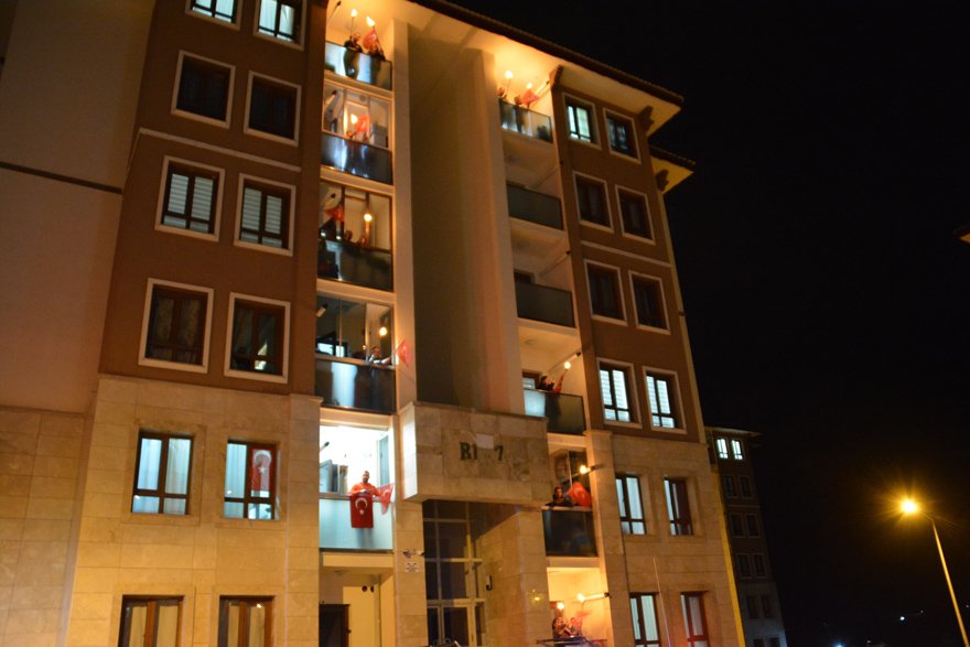 81 ilde milyonlarca vatandaş saat tam 21.00'de evlerinin balkonlarına ve pencerelerine çıkarak hep bir ağızdan coşku içinde İstiklal Marşı'nı okudu.