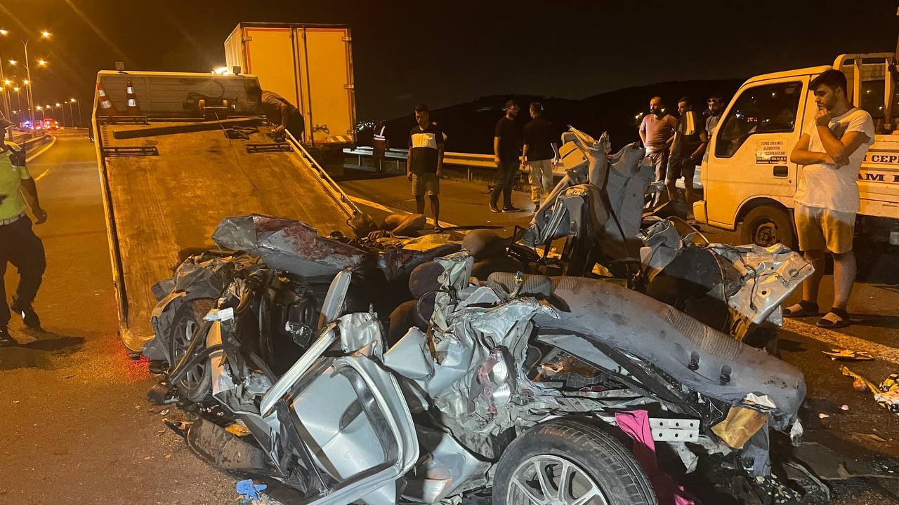 TEM Otoyolu İstanbul istikametinde kaza yaptığı için yolda duran kamyona, arkadan gelen bir otomobil çarptı. Kamyonun altına giren otomobile de başka bir kamyonet çarptı. Kaza nedeniyle TEM Otoyolu İstanbul istikameti trafiğe kapandı.