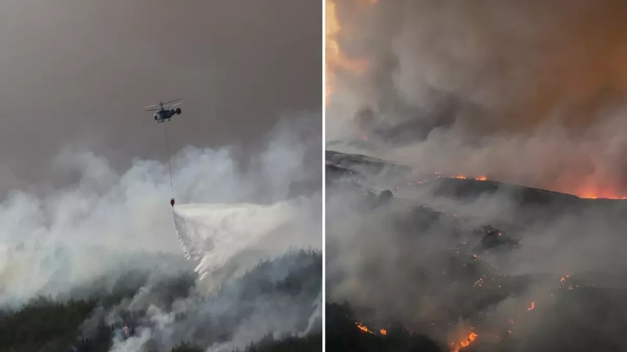 Ekiplerin yoğun çabalarına rağmen, rüzgârın etkisiyle büyüyen yangını kontrol altına alma çalışmaları sürüyor.