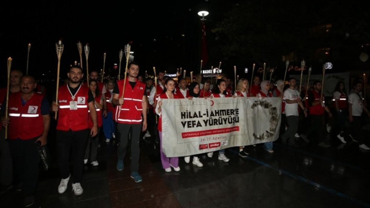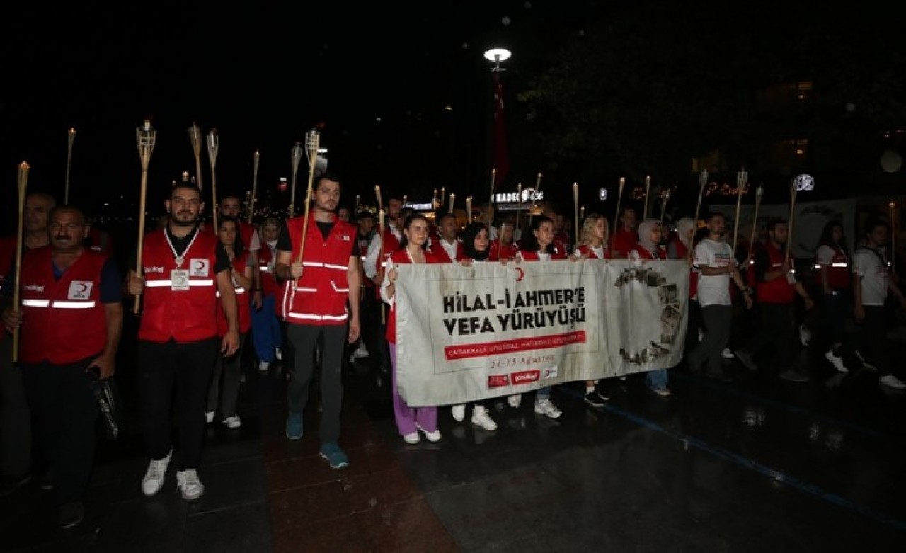 Çanakkale'de 25 Ağustos 1915'te İngiliz denizaltısı tarafından batırılan, Kızılay'ın savaşta yaralanan askerleri ve sağlık personelini taşıyan Halep Vapuru'nu ve şehit olan askerleri anmak için "Kızılay Hilal-i Ahmer'e Vefa Yürüyüşü ve Şehitleri Anma Programı" düzenlendi.