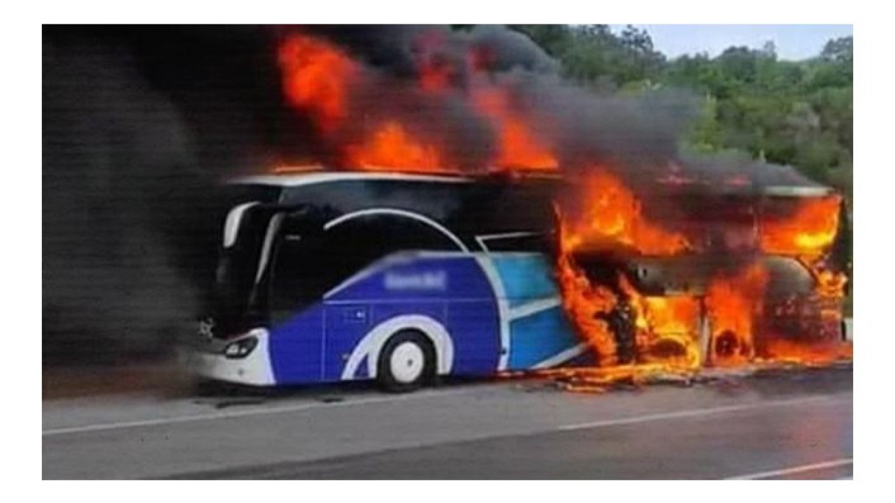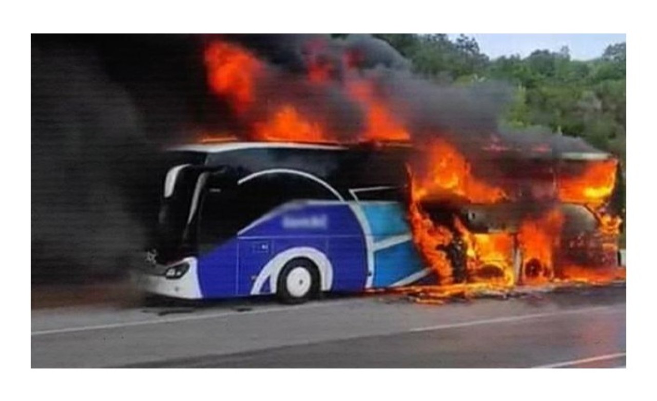 Kısa sürede büyüyen alevler otobüsün tamamını sarıp yol kenarındaki orman arazisine sıçradı.