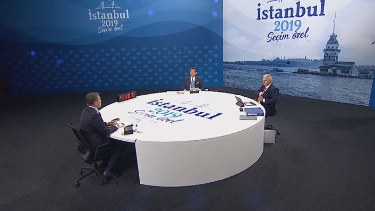 Binali Yıldırım ve Ekrem İmamoğlu, 17 yıl sonra bir ilke imza atarak ortak canlı yayına katıldı. Lütfi Kırdar Kongre ve Sergi Sarayı'nda gerçekleştirilen tartışmayı, tüm Türkiye izledi. Programın moderatörlüğünü gazeteci İsmail Küçükkaya, üstlendi. Küçükkaya, adaylara aynı soruları sordu ve cevap için 3 dakika verdi.