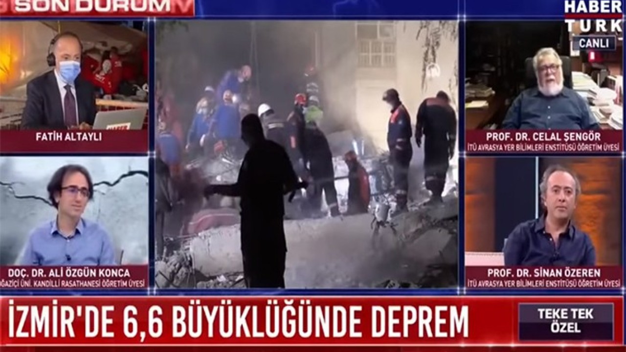 Habertürk Televizyonu'nda İzmir depremi için programa katılan Celal Şengör, 6.6 büyüklüğündeki yazıya isyan ederek "Şu yazıyı lütfen silin bu deprem 6.9-7 arasında" dedi. Uluslarası kurumlarında İzmir depremini 7 büyüklüğünde sunduğunu söyleyen Şengör'ün bu sözleri ardından yazı kaldırıldı. Programa, Boğaziçi Üniversitesi Kandilli Rasathanesi Öğretim Üyesi Özgün Konca ve İTÜ Avrasya Yer Bilimleri Enstitüsü Öğretim Üyesi Sinan Özeren de katıldı.