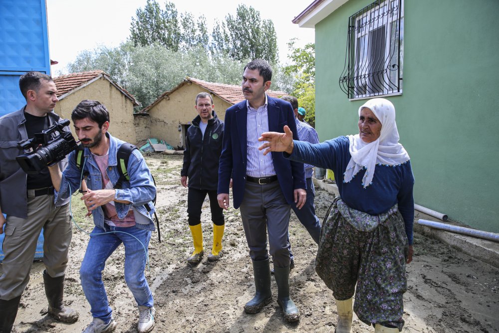 Bakan Kurum, Ankara Valisi Vasip Şahin ve beraberindeki heyetle dün etkili olan sağanak sonrası taşkınların yaşandığı Haymana ilçesi Kızılkoyunlu köyünü ziyaret etti. Burada vatandaşlarla görüşerek hasar gören ev ve ahırları inceleyen Bakan Kurum, yetkililerden çalışmalar hakkında bilgi aldı. Bakan Kurum, ahırları yıkılan hayvanlar için çadır ve konteyner tedarik edileceğini söyledi. Bakan Kurum, buradaki incelemelerinin ardından Akyurt ilçesine geçti.