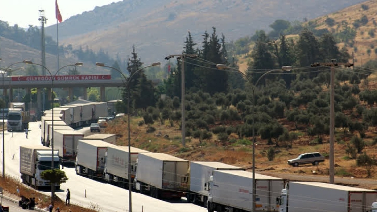 Hatay'ın Reyhanlı ilçesindeki Cilvegözü Sınır Kapısı'nda, Suriye'ye gönderilen insani yardım ve ticari malzemeleri taşıyan tırlar yoğunluk oluşturdu.