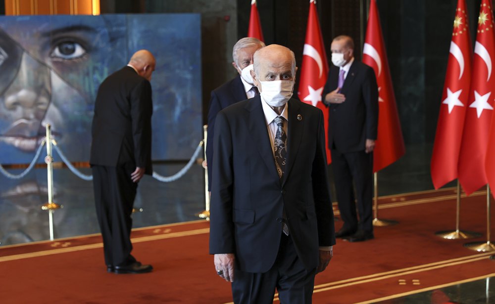 Salgın nedeniyle maske takan katılımcılar, sosyal mesafe kuralına uyarak Cumhurbaşkanı Erdoğan ile uzaktan selamlaştı.
