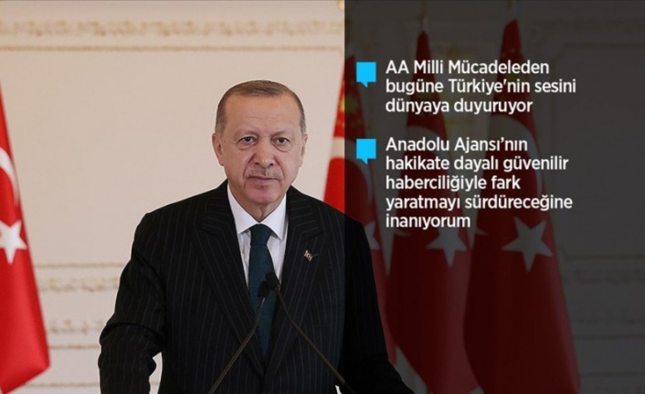 Cumhurbaşkanı Recep Tayyip Erdoğan, yayımladığı mesajda, Milli Mücadele'den bugüne Türkiye'nin sesini dünyaya duyuran AA'nın 102'nci kuruluş yıl dönümünü tebrik etti.